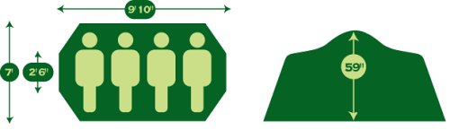 Packed with features for comfort and convenience, the Coleman Crestline 9'10"x7' Dome Tent sleeps four people comfortably. Measuring 59" high at the center, there's plenty of room to move around. Coleman's exclusive WeatherTec system is packed with features to keep you and your tent dry, whatever the weather. The durable tub floor has welded corners and inverted seams, making it waterproof to keep moisture out. Leak-free rainfly seams, water-resistant fabric, and a weather-protected zipper guard are all specially designed to repel water and keep you and your gear dry. A strong frame design with 8.5mm shock-corded, color-coded fiberglass poles are engineered to withstand stormy conditions. A mesh vent provides increased ventilation, while Coleman's Cool-Air Port allows you to access gear and adjust ventilation, to keep everything cool and comfortable. Two inside pockets and a gear loft offer extra storage options, while a heavy-duty welcome mat helps keep your tent clean inside. Other features include privacy windows and a skylight. There are separate storage bags for tent, poles and stakes, with easy-to-follow instructions sewn right into the carry bag, so you'll always have them with you.