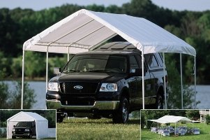 The ShelterLogic Max AP Series Canopies feature a heavy duty 1 3/8" all steel frame that is bonded with a DuPont thermoset baked on powder-coated finish which prevents chipping, peeling, rust and corrosion. The polyethylene cover is a triple layer, chemically heat bonded, enhanced weave with ripstop and is 100% waterproof. It is UV treated inside and out with added fade blockers, anti-aging, anti-fungal agents. Includes: One piece fitted full valance cover, Bungee cords, Foot plates, Temporary spike anchors, Enclosure Kit, and Extension Kit.