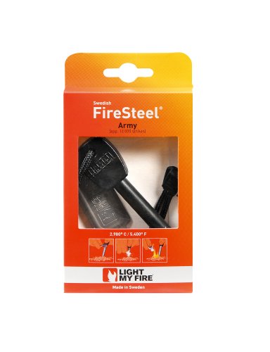 Originally developed for the Swedish Department of Defense, Swedish FireSteel is a flash of genius. Its 3,000°C spark makes fire building easy in any weather, at any altitude. Used by a number of armies around the world, Swedish FireSteel's dependability has already made it a favorite of survival experts, hunters, fishermen and campers. It has also found its way into cabins and backyards as a fool-proof way to light stoves and gas-barbecues.